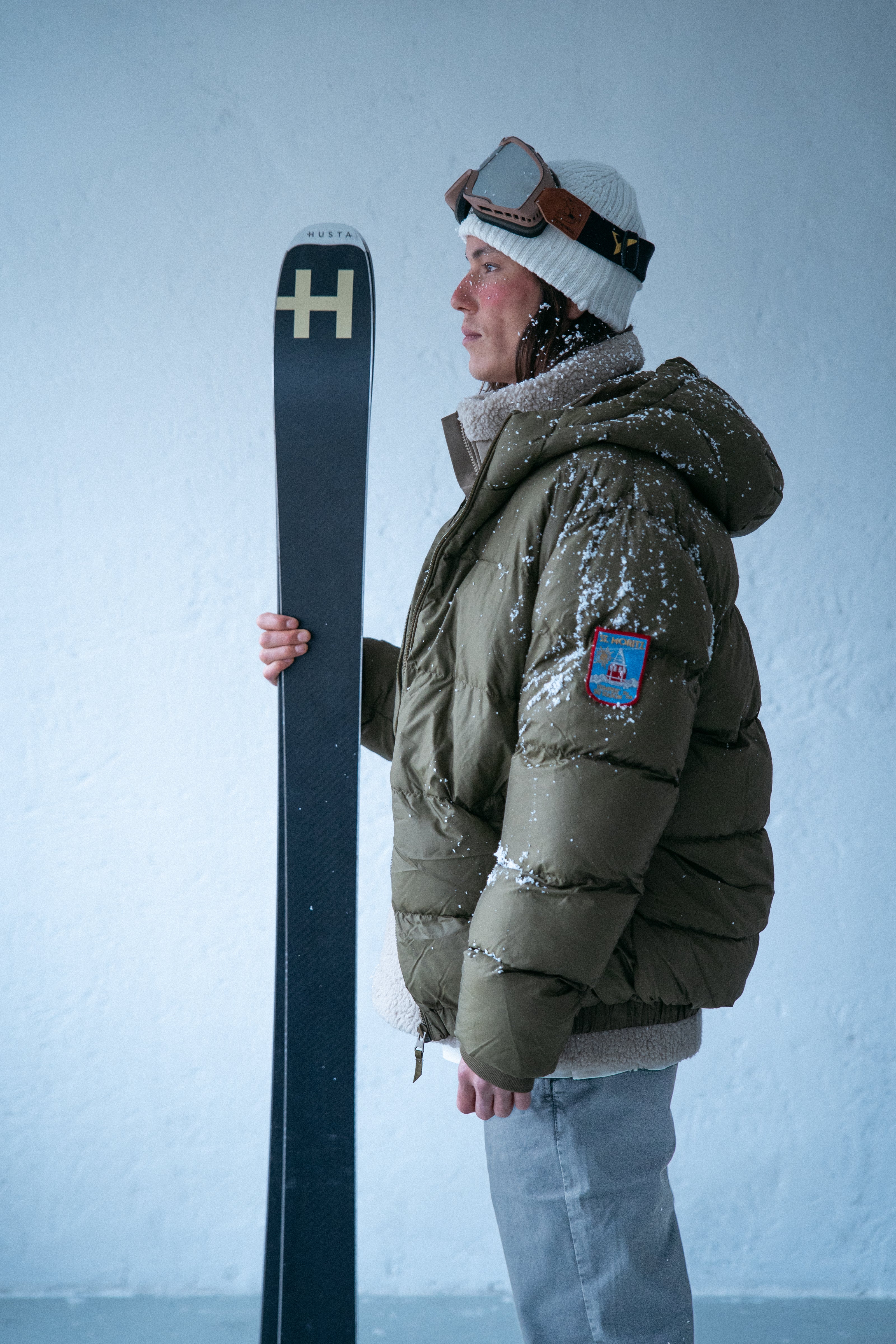 El modelo mide 1,82 m y lleva una M.